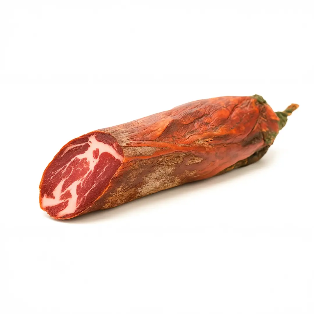 | Ingredientes | Cabecero de lomo de cerdo, sal, pimentón, ajo y orégano. Todos los ingredientes son de origen ecológico. |